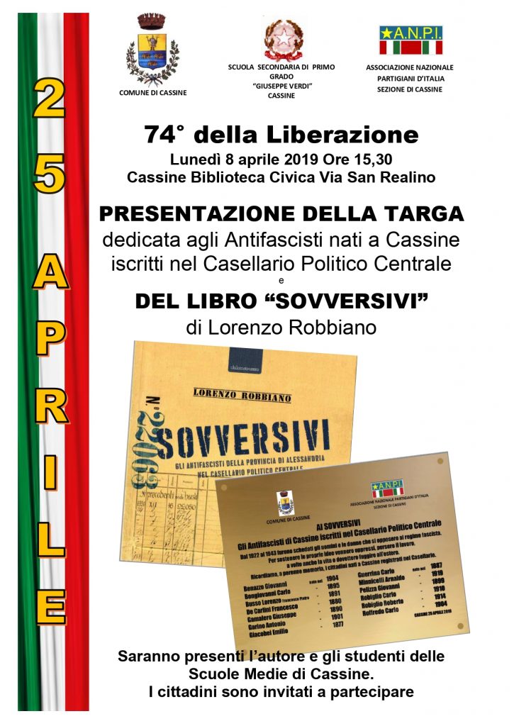 74° Anniversario della Liberazione – lunedì 8 aprile, ore 15:30 Cassine – Biblioteca Civica Via San Realino
