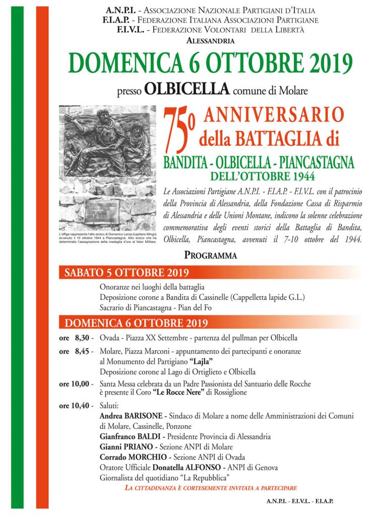 Lunedì 30 Dicembre 2024 a Rivalta Bormida Ricorda il sacrificio di Gennadij Adler "Alexander" e Paolo Bocca "Barbablu" Programma: Ore 11,00 Cimitero di Rivalta Bormida Omaggio ai Partigiani Caduti con deposizione di corone in memoria