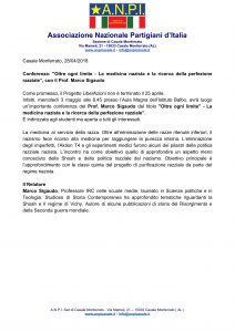Casale M.to, giovedì 3 maggio  conferenza: “Oltre ogni limite – La medicina nazista e la ricerca della perfezione razziale”, con Marco Sigaudo