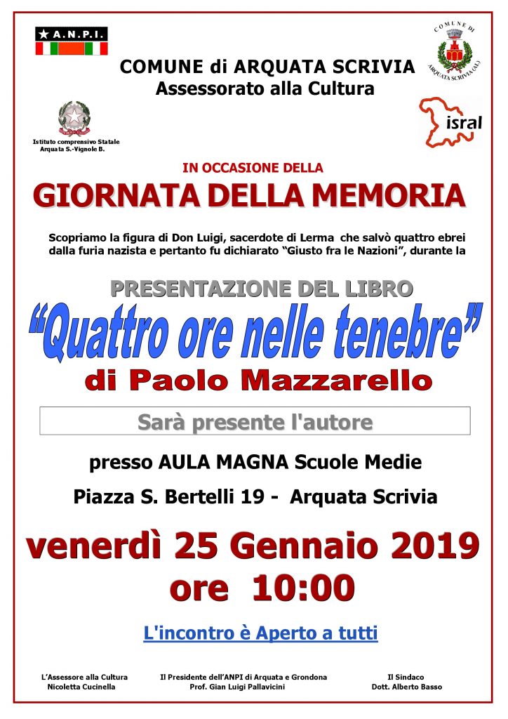 GIORNATA DELLA MEMORIA ad Arquata S. – presentazione del libro di Paolo Mazzarello “Quattro ore nelle tenebre”